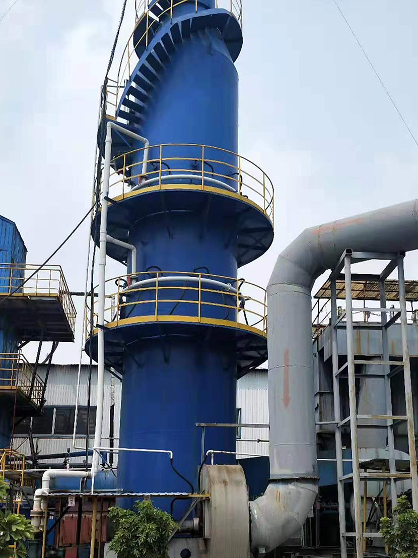 鈉-鈣雙堿法采用火堿吸收SO2  ,石灰還原再生,再生后吸收劑循環使用,無廢水排放。窯爐煙氣經除塵器除塵后進入脫硫塔,并與脫硫液中的堿性脫硫劑在霧化區內充分接觸反應,完成煙氣的脫硫吸收。