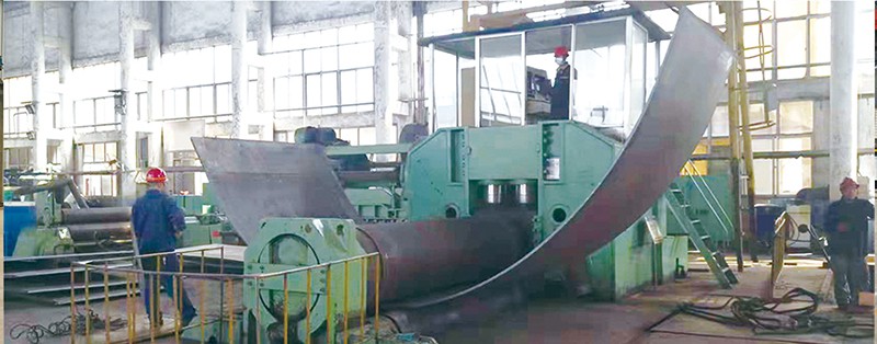 簡析卷板機(jī)的工作原理及應(yīng)用范圍卷板機(jī)是對板料進(jìn)行連續(xù)點彎曲的塑形機(jī)床,具有卷制O 同的形狀卷板機(jī)規(guī)格平整的塑性金屬板通過卷板機(jī)的三根工作輥(二根下輥、一根上輥) 之間,借助上輥的下壓及下輥的旋轉(zhuǎn)運(yùn)動,使金屬板經(jīng)過多道次連續(xù)彎曲(內(nèi)層 壓縮變形,中層不變,外層拉伸變形),產(chǎn)生塑性變形,卷制成所需要 的圓筒、錐筒或它們的一部分。 卷板機(jī)的工作原理是卷板機(jī)上輥在兩下輥中央對稱位置通過液壓缸內(nèi)的液壓油作用于活塞作垂直升降運(yùn)動,通過主減速機(jī)的末級齒輪帶動兩下輥齒輪嚙合作旋轉(zhuǎn) 運(yùn)動,為卷制板材提供扭矩。借助上輥的下壓及下輥的旋轉(zhuǎn)運(yùn)動,使金屬板經(jīng)過 多道次連續(xù)彎曲,產(chǎn)生塑性變形,卷制成所需要的園筒、錐筒或它們的一部分。